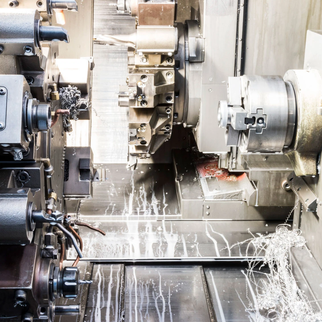 Unsere Präzisionsdreherei verfügt über etwa zehn Drehmaschinen und CNC-Drehzentren, die von Fachleuten betrieben werden. Diese Profis gewährleisten mit großer Sorgfalt und Erfahrung die dimensionale Kontrolle und die Produktqualität. Alle Maschinen sind mit ein bis drei Revolvern und einer Y-Achse ausgestattet und verfügen über einen hydraulischen Stangenvorschub, der in der Lage ist, Stangen bis zu einem Durchmesser von 80 mm zu bearbeiten.